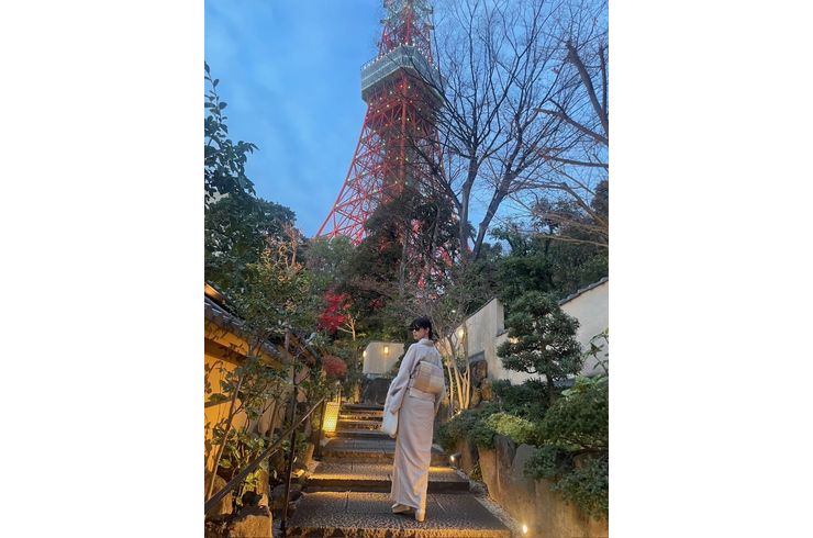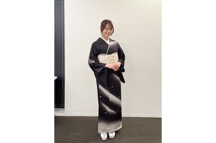 モデルの森星さんにはんなりの着物を