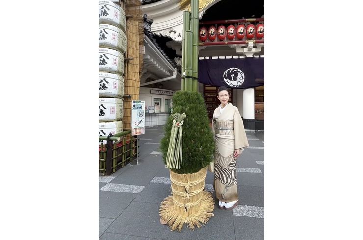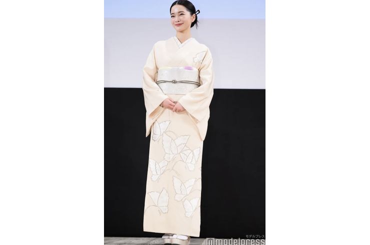 2026/01/07昨年の大晦日に歌舞伎座で開催された 映画「国宝」の特別上映会。 舞台挨拶で女優の見上愛さんに、はんなりの着物を お召しいただきました。 素敵に着こなしていただきありがとうございます。 -