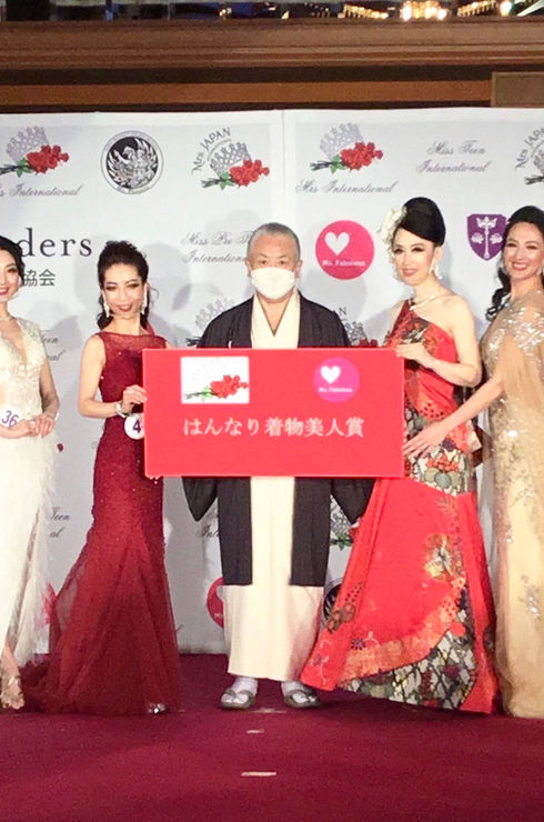 2022/06/03牧瀬里穂さんにはんなりの帯を締めて頂きました